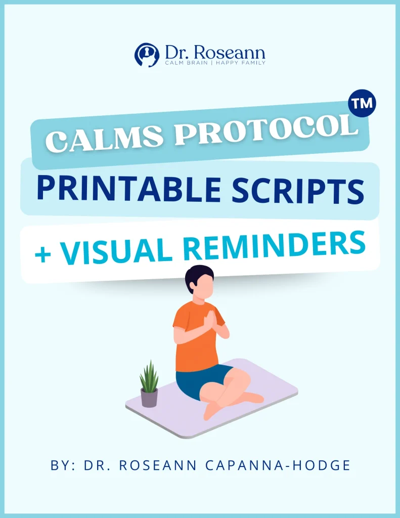 CALMS Protocol™ Printable Scripts + Visual Reminders to give you calm, supportive language to use when your child is dysregulated.